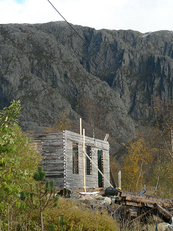 Her er grunnmuren lagt ferdig og første etasje har kommet på plass i nye omgivelser.